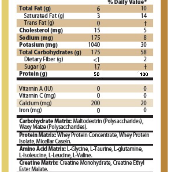 Big Ramy Labs Red Rex Beef Mass Plus, un outil de prise de poids puissant conçu pour vous aider à atteindre vos objectifs de taille, de force et de développement musculaire. Avec 1 340 calories par portion, ce mélange riche en calories fournit les niveaux de macronutriments idéaux pour soutenir votre apport calorique quotidien pour la masse musculaire. Rempli de 50 grammes d’isolat de protéines de bœuf hydrolysées, de 284 grammes de glucides et de créatine ajoutée, Red Rex Beef Mass Plus est la stratégie post-entraînement parfaite pour une croissance sérieuse. 50 g d’isolat de protéines de bœuf hydrolysées : contient de l’isolat de protéines de bœuf hydrolysées de haute qualité, un complément essentiel pour développer et préserver la masse musculaire. Créatine ajoutée : contient de la créatine HCL pour fournir l’énergie dont les muscles ont besoin pour gagner en force, favorisant ainsi des performances athlétiques améliorées.